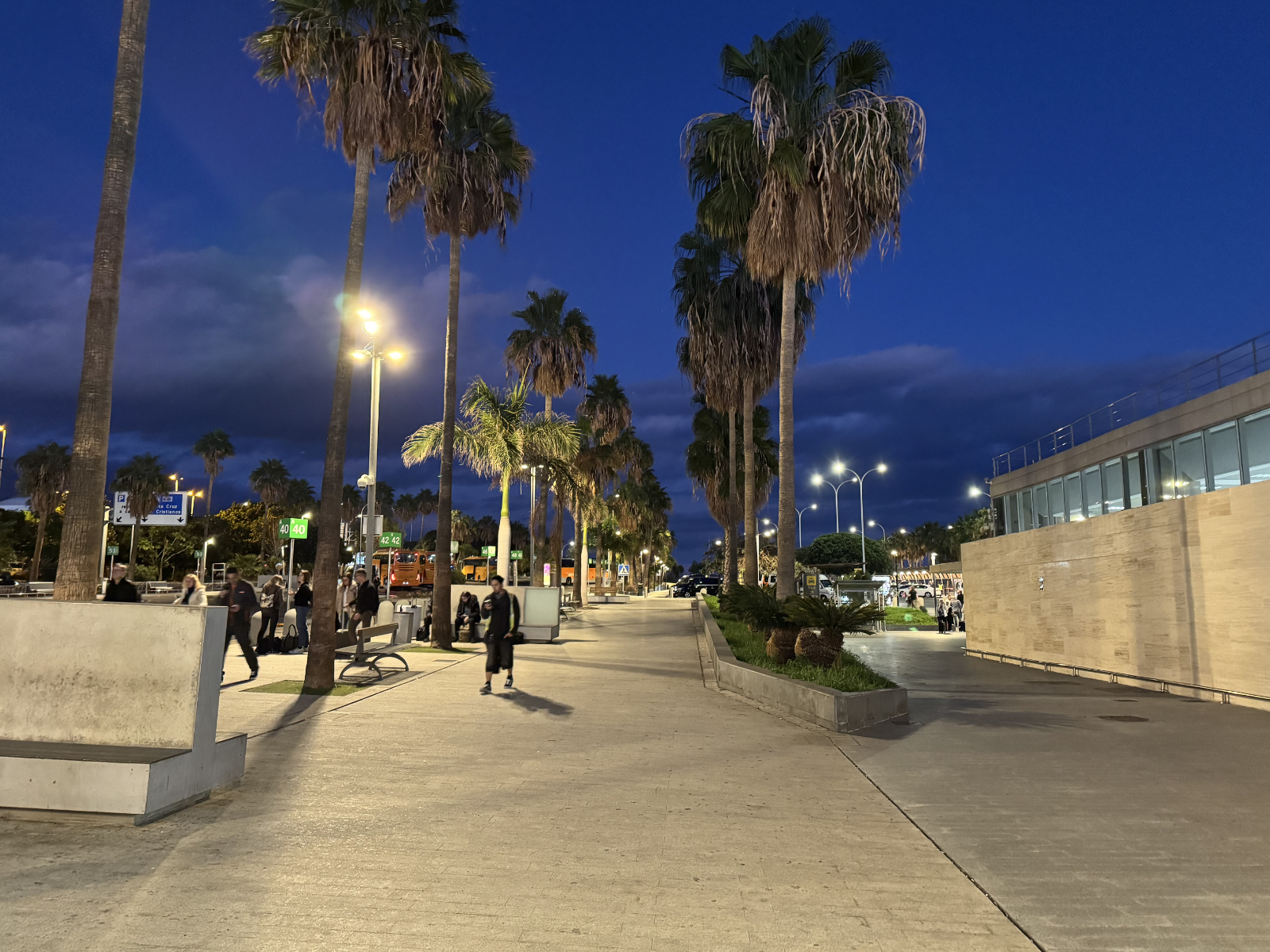 Naša pot proti Kanarskim otokom se je začela v sredo, 22. 1. okrog devete ure zjutraj, ko smo sedeli v avtu in se peljali proti letališča v Trevisu. Vožnja je potekala brez težav in pred dvanajsto uro smo že parkirali na parkirišču tik ob terminalu majhnega treviškega letališča. Brez naglice smo pojedli še kosilo, si v lokalu privoščili kavo in kakav ter se nato ob drugi uri vkrcali na letalo na prvo letalsko potovanje z dvema majhnima otrokoma. Za Julijo je bil to prvi let, kjer je sedela na svojem sedežu, Eva pa je kot dojenček še lahko sedela v naročju. Pet ur dolg let je minil dokaj hitro in kljub začetnim skrbem in negotovosti, kako preživeti toliko časa z otroci na letalu, se je vse dobro izteklo. Otrokom so novosti večinoma zanimive in Julija je zelo uživala ob vzletu in pristanku. Tako smo malo po sončnem zahodu že stali pred letališkim terminalom in uživali ob prijetnih dvajsetih stopinjah. Ostal nam je le še prevzem avtomobila in vožnja do dvajset minut oddaljenega hotela na turistični južni obali med Costa Adeje in Playa de las Americas, kjer smo ravno še ujeli večerjo. Dan se je končal ob desetih po lokalnem času (enajstih po našem), ko smo končno pristali v postelji.