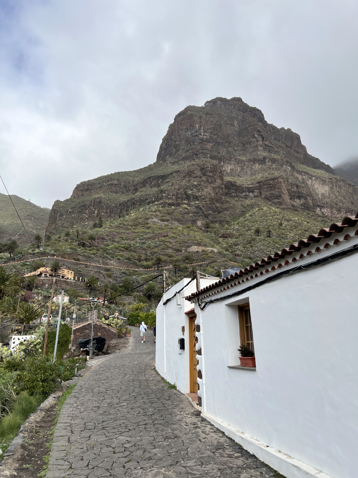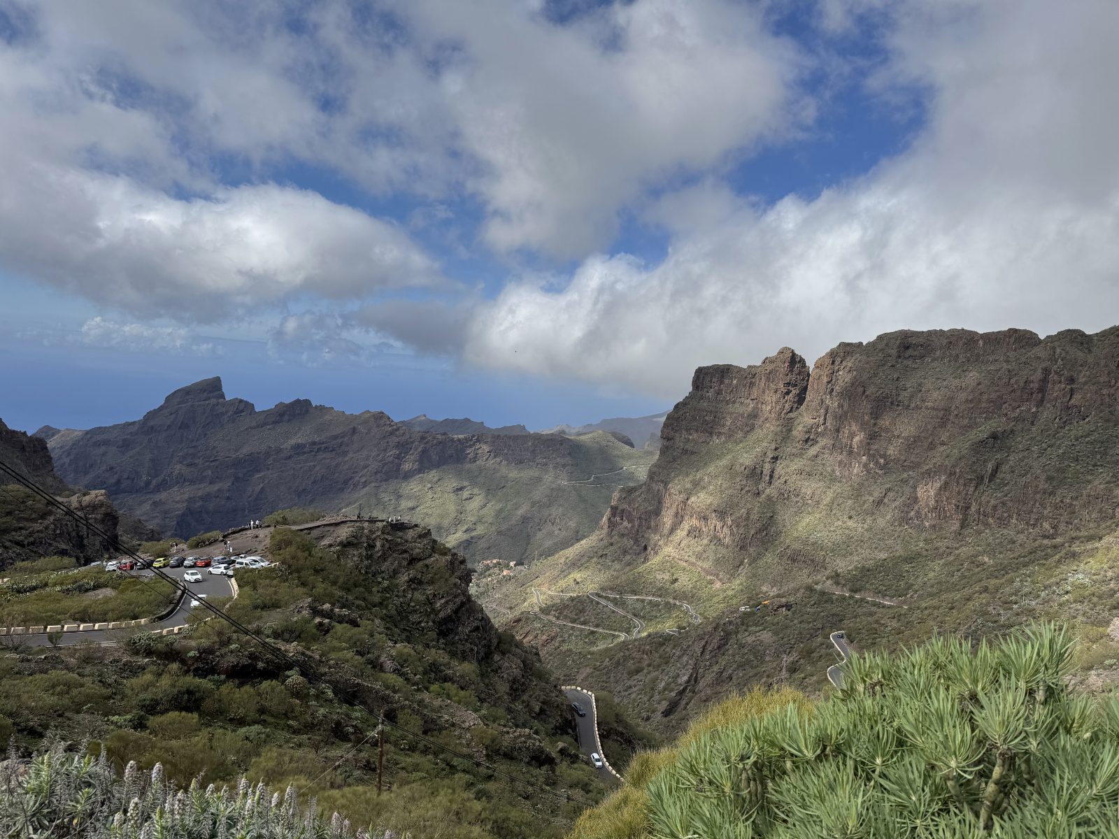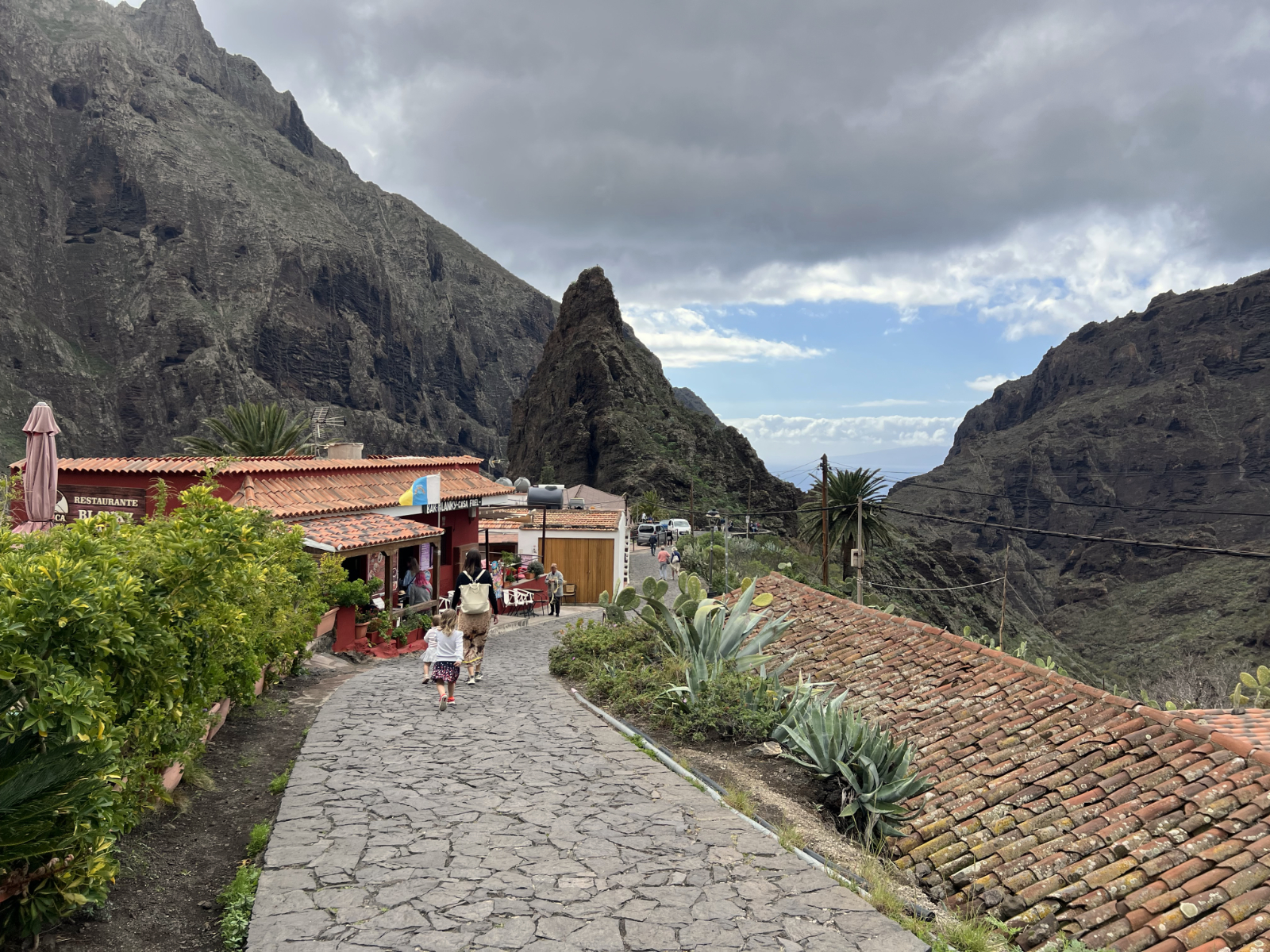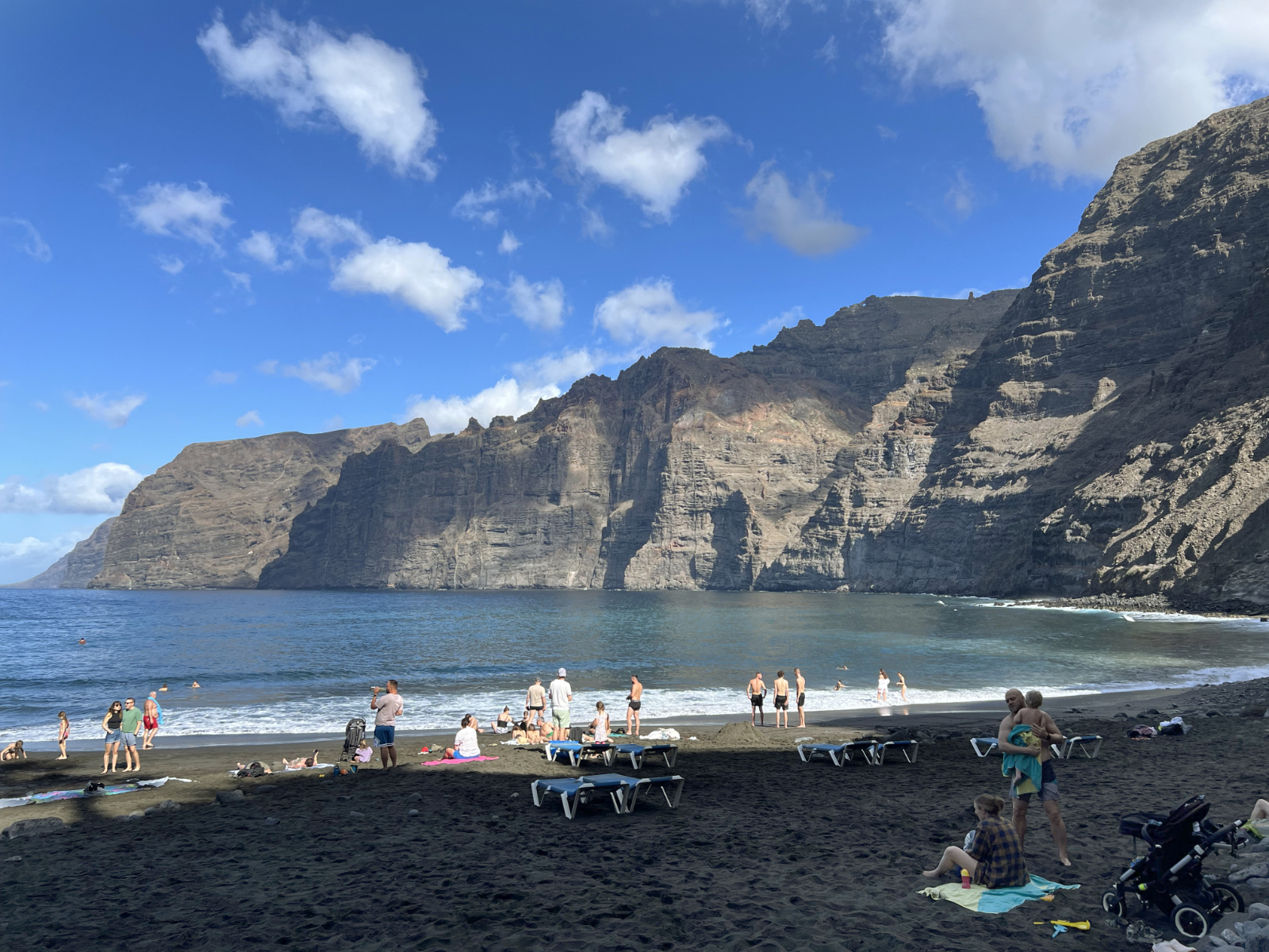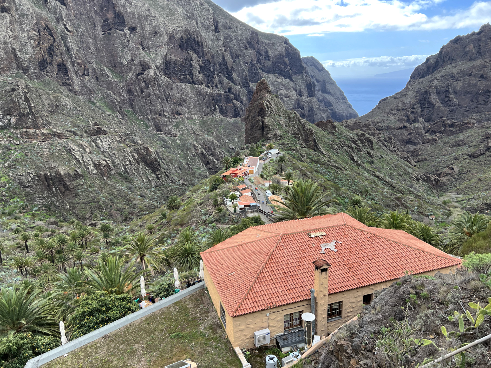 V hotelu nismo zdržali dolgo in v petek po zajtrku smo že sedeli v avtu in se peljali proti severu do kraja Los Gigantes. Zanimivo ime za sicer zaspano malo turistično mestece, a glavna atrakcija tu seveda ni mesto, temveč klifi severno od mesta, ki so visoki kar do 800 metrov. Avto smo parkirali skoraj čisto v centru in se sprehodili do pristanišča, kjer stoji celo nekaj hiš v starinskem slogu, z belo fasado in oblečenih z lesom. Lično in avtentično, pravo nasprotje betonski gradnji masovnih apartmajskih kompleksov! Na robu mesteca je še mestna plaža s črnim peskom, od koder je lep pogled na bližnje klife. Brez skupinske slike seveda ni šlo, pred odhodom pa smo še posedeli v enem izmed lokalom in si privoščili kavo ter sladoled. Sledila je vožnja z avtom v hrib proti kraju Santiago del Teide na nadmorski višini okoli 1000 m. Višje, kot smo se dvignili, bolj zelena je bila pokrajina in pri Santiagu se je že videla gozdna meja. Tu smo tudi skrenili iz glavne ceste in zavili proti zahodu na ozko in ovinkasto cesto, ki je vodila proti vasici Masca, za katero pravijo da je najlepša na otoku. Leži na nadmorski višini okrog 700 m, do leta 1991 do nje ni vodila nobena cesta, od vasice do morja pa je po peš poti tri ure hoje. Višini in pokrajini primerna je bila tudi temperatura, ki se je spustila na slabih 14 stopinj z vztrajnim vetrom. Pravi izvor vasi danes ni znan, zagotovo se ve le, da je bilo tu naselje še pred španskim zavzetjem otoka leta 1496, kjer so živeli domorodci guanči. Legenda pravi, da so v vasi živeli gusarji, kar je glede na nedostopnost lahko prav verjetno. Za 5 km ceste od Santiaga del Teide do Masce smo porabili več kot pol ure, saj je cesta ozka in zelo prometna, srečanja dveh vozil pa so kar težavna. Pri vasici je bila težava še parkirišče, saj ravnine tu ni, a na našo srečo se je ravno eno mesto sprostilo. Vasica je slikovita, s čudovitimi razgledi, v lokalni gostilni pa smo si privoščili odlično kosilo tipičnih kanarskih jedi (kozji golaž). A ves čas sva se spraševala, od česa so ljudje tu sredi hribov živeli. Rastje je večinoma trava in kaktusi, ravnih površin ni, morje pa je daleč stran. Vožnja nazaj je šla mnogo bolj tekoče, pred večerjo pa je bil čas še za hiter skok v morje.