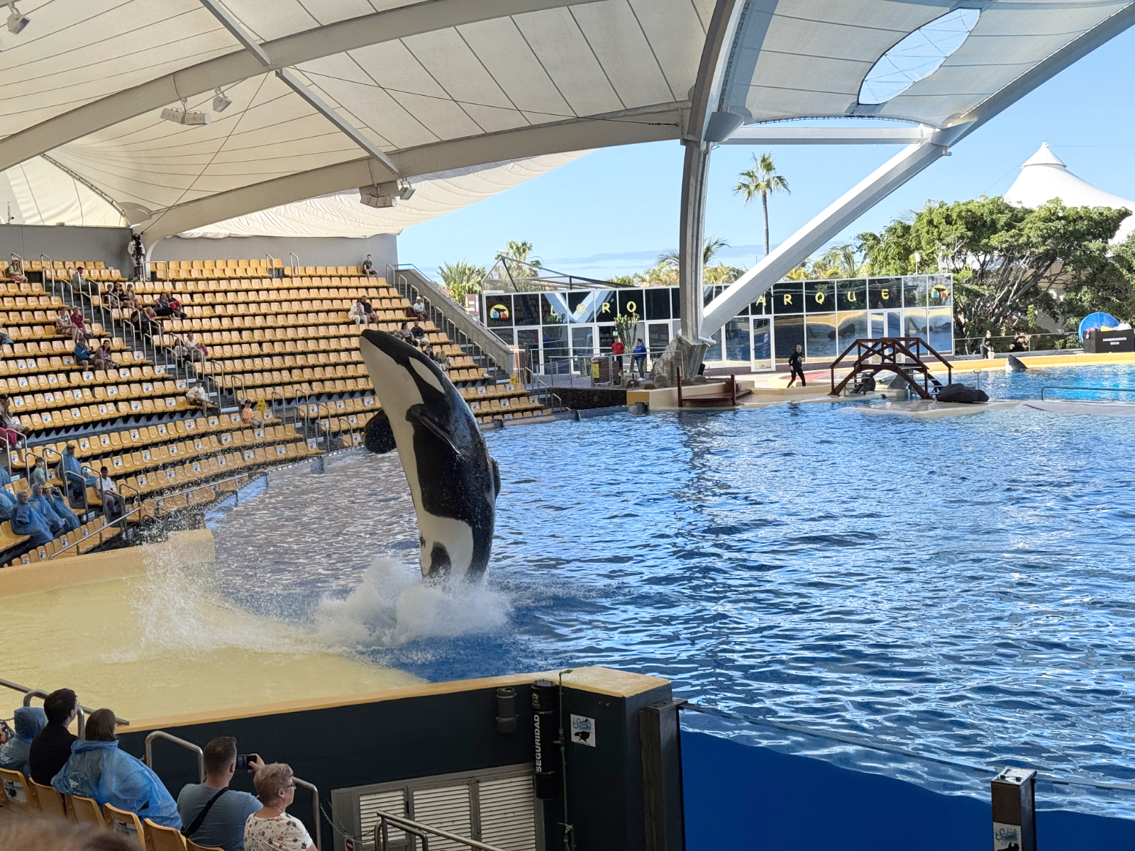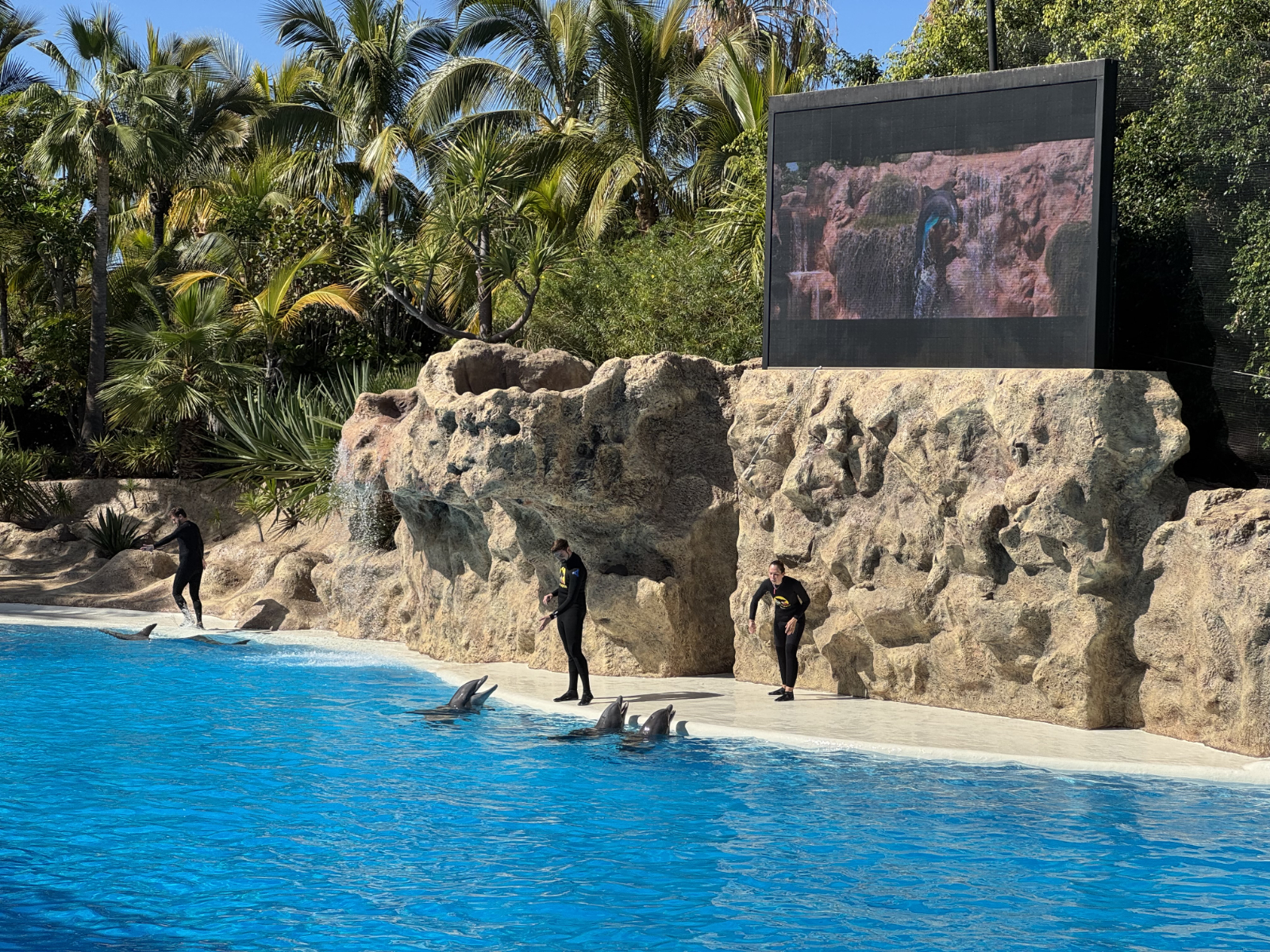 Z majhnimi otroci je nabor atrakcij, katere moraš obiskati, lahko precej drugačen. Tako smo se v nedeljo odpravili na sever otoka proti živalskemu vrtu Loro Parque. Ustanovljen je bil že leta 1972 kot park za papige v mestu Puerto de la Cruz, danes pa poleg papig gostuje tudi številne druge živali, vključno z delfini, pingvini in kontroverznimi orkami. Prispeli smo okrog pol dvanajstih, kar je bilo dovolj zgodaj, da ni bilo težav s parkiranjem. Po plačilu vstopine (114 € za vse štiri) smo vstopili v vrt in začeli z ogledom velikega in predvsem zelenega parka. Začeli smo pri gorilah in nadaljevali v ledeno dvorano s pingvini. Pet različnih vrst pingvinov, vključno s kraljevimi pingvini v veliki dvorani z vodo in snegom, res impresivno. Bil je že čas za malico, ki smo si jo privoščili kar v enem izmed številnih lokalov v parku. Nato je sledila predstava delfinov v velikem akvariju. Šest delfinov z njihovimi oskrbniki je pripravilo res spektakularen dvajset minutni prikaz trikov, skokov in plesa. Poleg delfinov smo bili navdušeni še nad meduzami, koralami (v vrtu dejansko vzgajajo korale) in akvarijem z morskimi psi, za konec pa smo si prihranili še predstavo z orkami. Te orjaške živali (dosežejo dolžino do 8 metrov in težo do 6 ton) vlivajo strahospoštovanje gledalcem in tudi njihovim trenerjem. Trenerji ne plavajo z njimi v bazenu in so na splošno mnogo bolj zadržani kot pri delfinih, kar je zagotovo posledica mnogih incidentov z orkami v tem in drugih parkih. Ne nazadnje je leta 2009 orka v Loro Parqueju ubila svojega trenerja. In čeprav imajo orke na videz kar velik bazen, glede na njihovo velikost izpade vse skupaj premajhno in posledično tudi redkokatera orka v ujetništvu doživi 20 let, kljub pričakovani življenjski dobi 80. Končni vtis vrta je bil mešanih občutkov, z izjemnimi akvariji in predstavo delfinov in na drugi strani manj življenjskega prostora za druge živali, kot so recimo tigri, gorile in orke. Glede tega je bil res izjemen avstralski živalski vrt Steva Irwina, proti kateremu ostali izpadejo preprosto premajhni. Preostala nam je še slikovita pot domov z čudovitim pogledom na vulkan Teide, na katerega smo se imeli namen odpraviti naslednji dan.