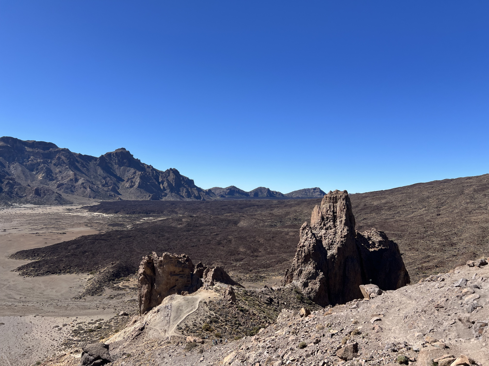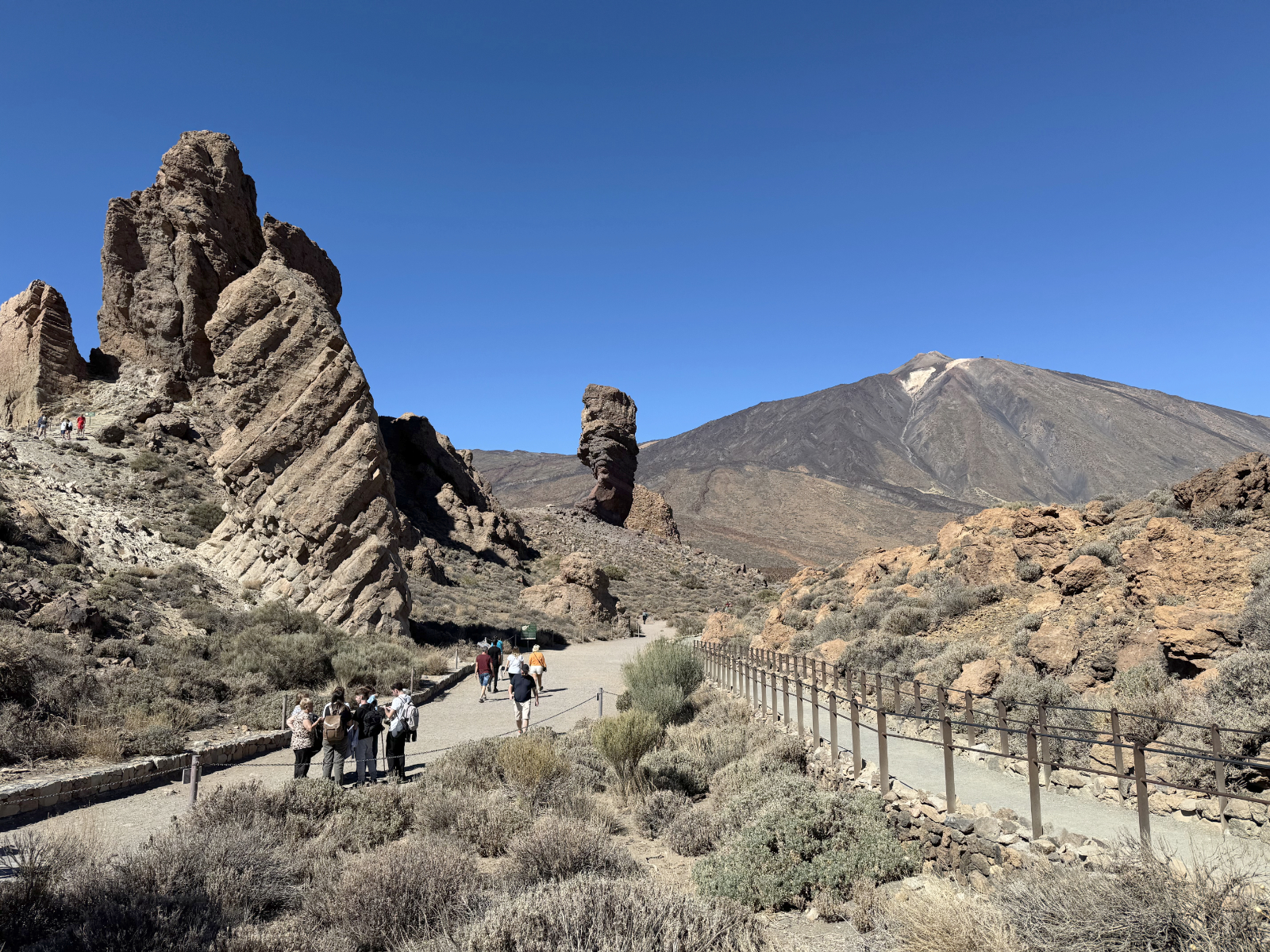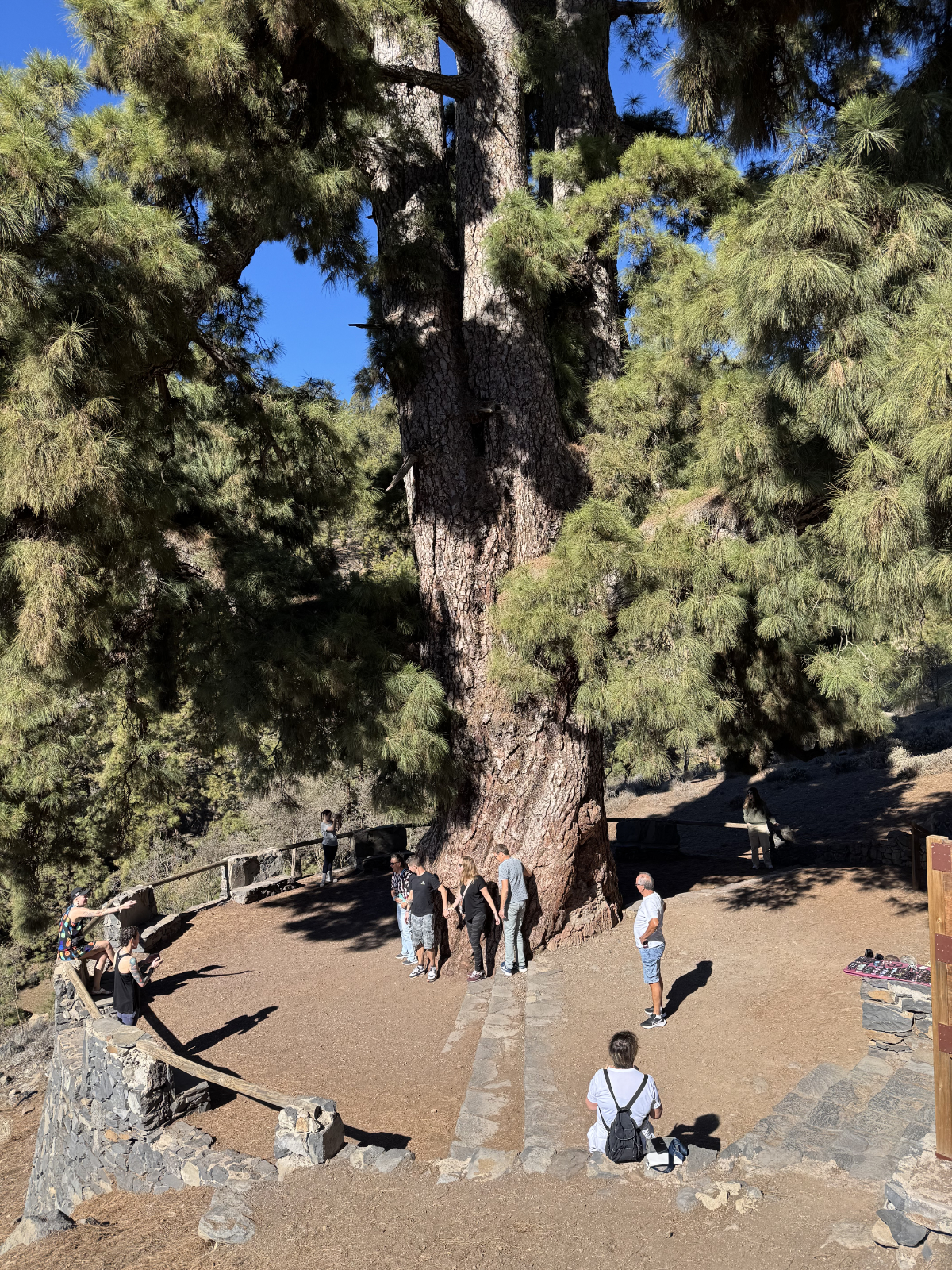 Kanarski otoki so vulkanskega izvora in Tenerife ni izjema. Formacija otoka se je začela pred približno 12 milijoni le v obliki večih vulkanov na današnjih robovih otoka in nato pred približno 3 milijoni let v sredini otoka, ko se je formiral vulkan Las Cañadas. Ta del je danes viden kot velika kaldera v osrčju otoka. A najbolj impresiven je vulkan Teide, ki je nastal pred okoli 150.000 leti in se danes dviga 3716 m v višino. Če štejemo višino od morskega dna, je s svojimi 7500 m tretji najvišji vulkan na svetu (višja sta le vulkana na otoku Hawai’i). Celotno območje kaldere je danes naravni park, katerega smo se odločili obiskati v ponedeljek. Vzpon se začne že pri Los Cristianos in cesta vztrajno vijuga v klanec. Pri mestu Vilaflor se začne gozdna meja in prvi postanek na poti: najdebelejše drevo v Španiji in poleg še najvišje drevo Španije. Oba sta vrste kanarskega bora, najdebelejši ima 9 metrov obsega pri 45 metrih višine, najvišji pa je visok kar 56 metrov. Prava lepotca v že tako simpatičnem borovem gozdu. Cesta se nato vije skozi tako imenovano gozdno krono – območje okrog in okrog vulkana, med približno 1000 m in 2000 m nadmorske višine, ki je obdano z gozdom. A ko se pripelješ do roba kaldere, se gozd nenadoma neha, pokrajina pa postane kamnita, vulkanska in popolnoma drugačna od česarkoli nam znanega. Odpre se pogled na mogočni Teide in poleg njega na precej nižji Pico Viejo, kjer je zadnji izbruh potekal leta 1909. Znotraj nacionalnega parka je kar nekaj točk, kjer se z avtom lahko ustaviš, občuduješ vulkansko pokrajino in se podučiš o geografiji območja na učnih tablah. Ustavili smo se na štirih in uživali v toplem vremenu (bilo je več kot 20 stopinj in to na višini čez 2000 metrov), pri spodnji postaji gondole pa smo si privoščili sladoled in kavo. Z gondolo se lahko povzpneš na 3400 metrov nad morjem, za sam vzpon na vrh Teida pa je potrebna dovolilnica, katerih izdajo le dobrih sto na dan in jo je potrebno rezervirati mesece v naprej. Okrog štirih smo z ogledom zaključili in se po slikoviti cesti po zahodnem pobočju spustili nazaj do obale.